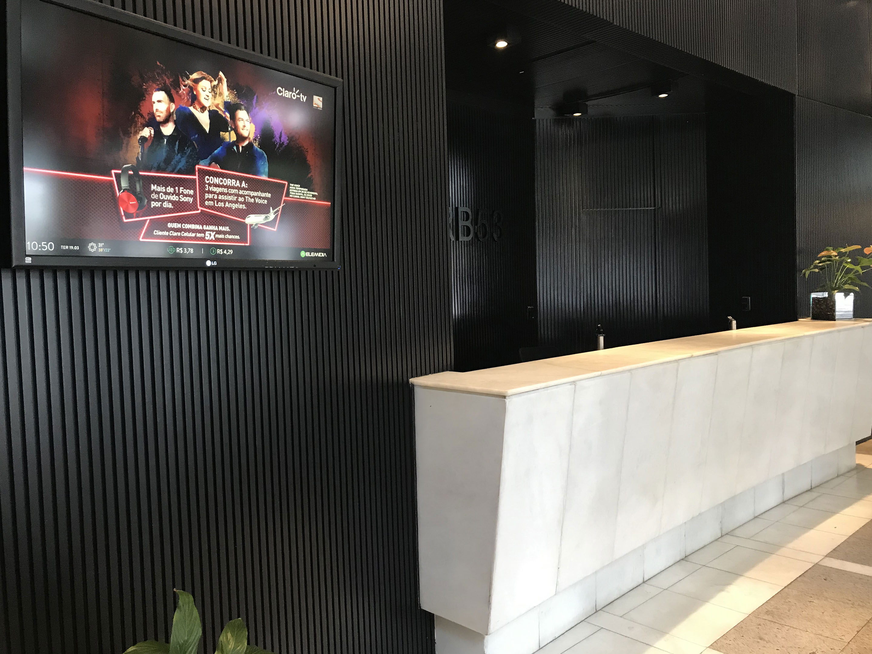 Prédio com funcionamento 24h e recepcionistas bilíngues durante horário comercial.